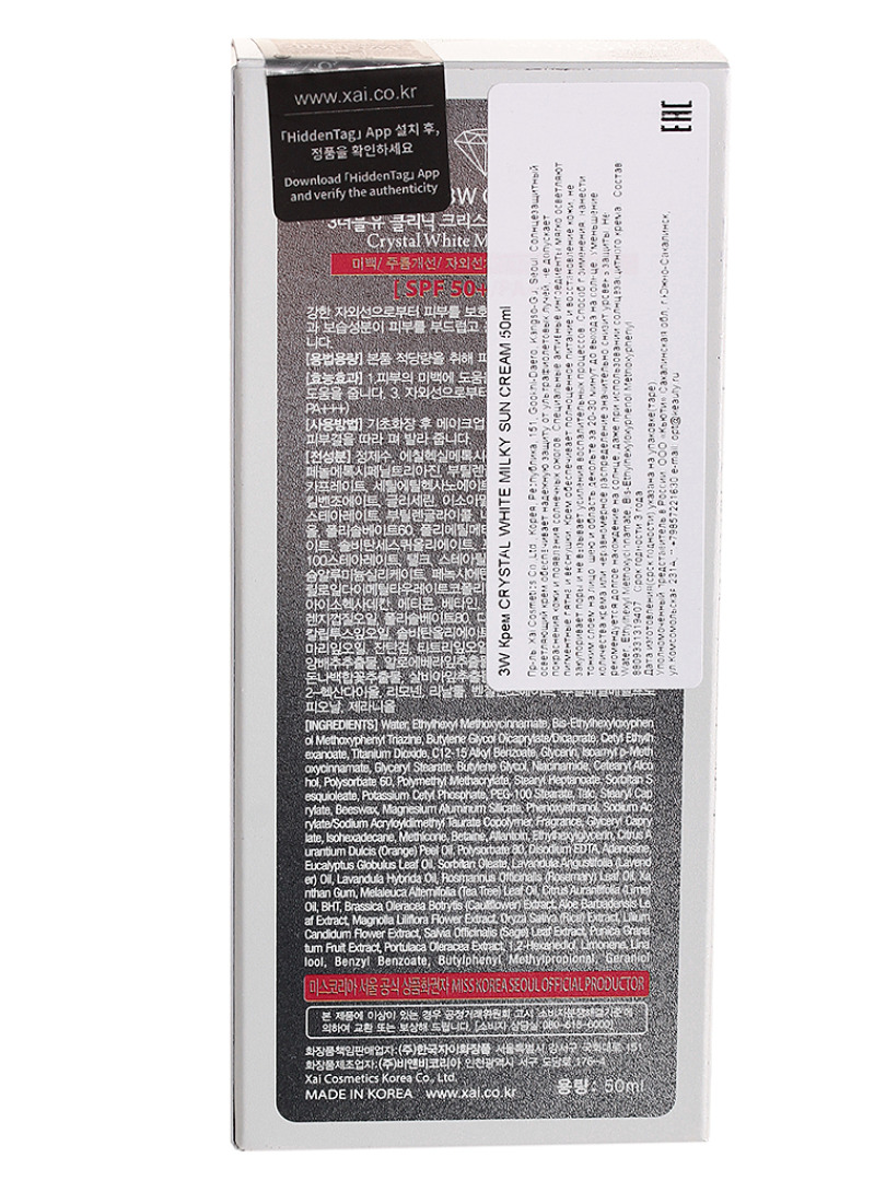 3W SUN Крем для лица солнцезащитный с молочным протеином CRYSTAL WHITE MILKY SUN CREAM 50ml