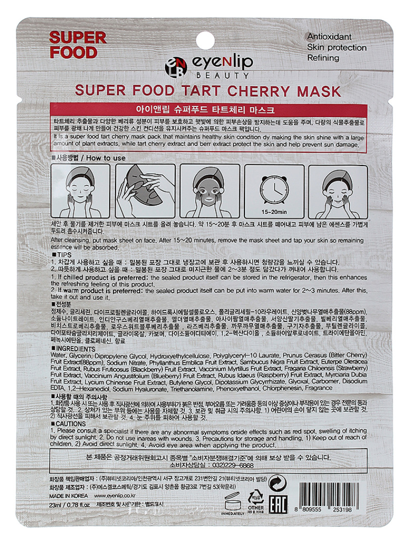 ENL SUPER FOOD Маска для лица тканевая Super Food Mask #Tart Cherry