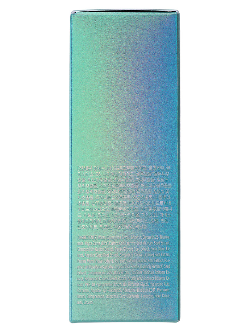 Water, Dipropylene Glycol, Glycerin, Glycereth-26, Niacinamide, Oryza Sativa (Rice) Extract, Coix Lacryma-Jobi Ma-yuen Seed Extract, Chenopodium Quinoa Extract, Panax Ginseng Root Extract, Poria Cocos Extract, Angelica Gigas Root Extract, Glycyrrhiza Glabra (Licorice) Root Extract, Prunus Mume Flower Extract, Astragalus Membranaceus Root Extract, Paeonia Lactiflora Bark/Sap Extract, Oenothera Biennis (Evening Primrose) Seed Extract, Cinnamomum Cassia Bark Extract , Cnidium Officinale Rhizome Extract, Rehmannia Chinensis Root Extract, Atractylodes Japonica Rhizome Extract, PEG-40 Hydrogenated Castor Oil, Butylene Glycol, Hyaluronic Acid, Carbomer, Arginine, 1,2-Hexanediol, Adenosine, Disodium EDTA, Phenoxyethanol, Chlorphenesin, Fragrance, Benzyl Benzoate, Limonene, Hexyl Cinnamal, Linalool