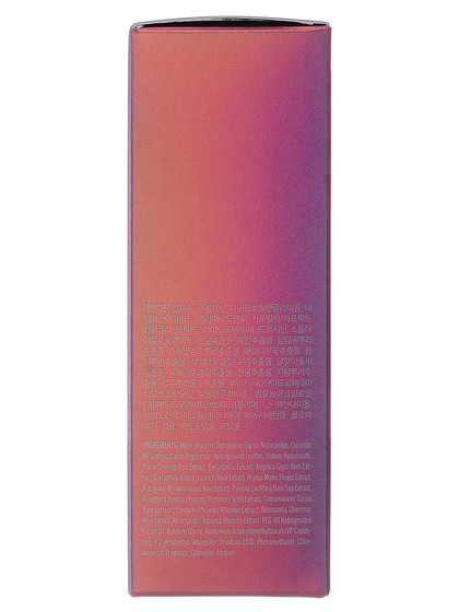 Water, Glycerin, Dipropylene Glycol, Niacinamide, Ceramide NP, Caprylic/Capric Triglyceride, Hydrogenated Lecithin, Sodium Hyaluronate, Panax Ginseng Root Extract, Poria Cocos Extract, Angelica Gigas Root Extract, Glycyrrhiza Glabra (Licorice) Root Extract, Prunus Mume Flower Extract, Astragalus Membranaceus Root Extract, Paeonia Lactiflora Bark/Sap Extract, Oenothera Biennis (Evening Primrose) Seed Extract, Cinnamomum Cassia Bark Extract , Cnidium Officinale Rhizome Extract, Rehmannia Chinensis Root Extract, Atractylodes Japonica Rhizome Extract, PEG-40 Hydrogenated Castor Oil, Butylene Glycol, Ammonium Acryloyldimethyltaurate/VP Copolymer, 1,2-Hexanediol, Adenosine, Disodium EDTA, Phenoxyethanol, Chlorphenesin, Fragrance, Citronellol, Linalool