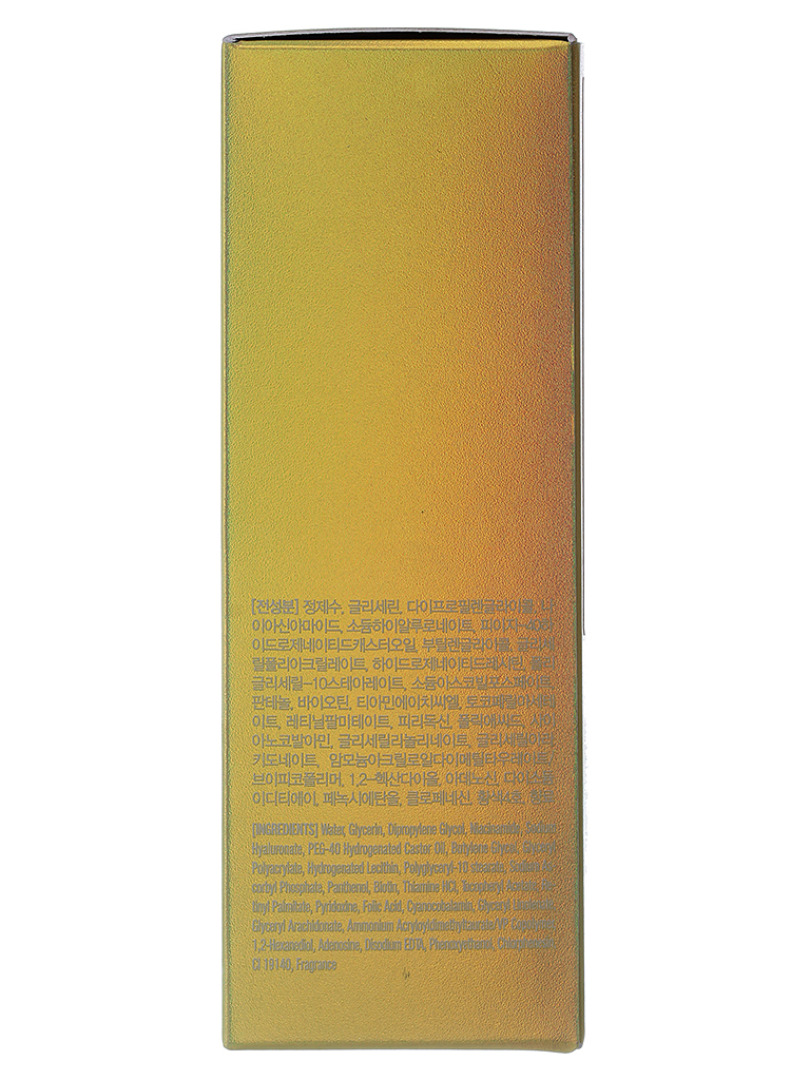 Water, Glycerin, Dipropylene Glycol, Niacinamide, Sodium Hyaluronate, PEG-40 Hydrogenated Castor Oil, Butylene Glycol, Glyceryl Polyacrylate, Hydrogenated Lecithin, Polyglyceryl-10 stearate, Sodium Ascorbyl Phosphate, Panthenol, Biotin, Thiamine HCl, Tocopheryl Acetate, Retinyl Palmitate, Pyridoxine, Folic Acid, Cyanocobalamin, Glyceryl Linolenate, Glyceryl Arachidonate, Ammonium Acryloyldimethyltaurate/VP Copolymer, 1,2-Hexanediol, Adenosine, Disodium EDTA, Phenoxyethanol, Chlorphenesin, CI 19140, Fragrance