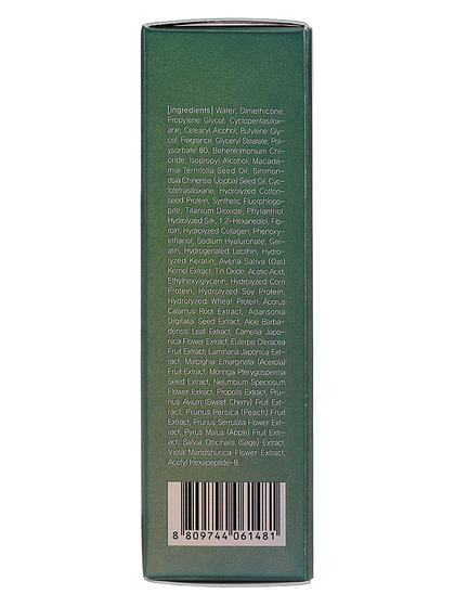 Water, Dimeticon, Propelen Glicol, Cyclopentasiloxane, Cetearil Alcohol, Fragrance, Glyceryl Srearate, Polysorbate Chloride, Isopropil Alcohol, Macadamia Ternifolia Seed Oil, Simmondsia Chinensis (Jojoba) Seed Oil, Cyclotetrasiloxane, Hydrolyzed Cottonseed Protein, Synthetic Fluorphlogopite, Titanium Dioxide, Phytantriol, Hydrolyzed Silk and ect.