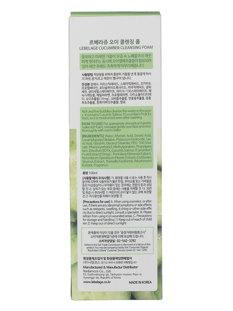 LBLG FOAM Пенка для лица очищающая с огуречным экстрактом LEBELAGE CLEANSING FOAM 100ml -CUCUMBER