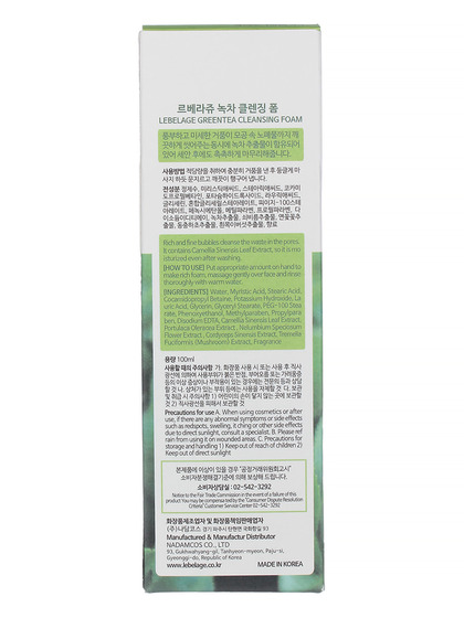 LBLG FOAM Пенка для лица очищающая с экстрактом зеленого чая LEBELAGE CLEANSING FOAM 100ml - GREENTEA