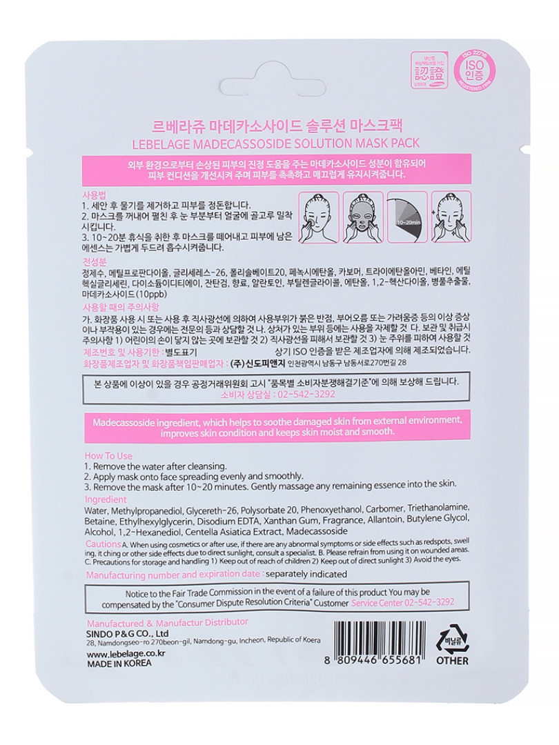 LBLG Маска для лица тканевая с экстрактом мадекассосида LEBELAGE MADECASSOSIDE SOLUTION MASK