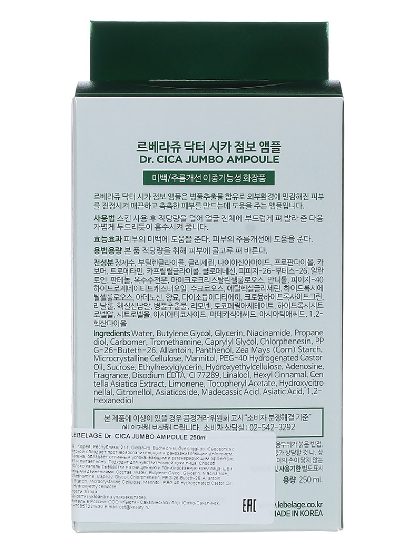 LBLG AMPOULE Сыворотка для лица с экстрактом центеллы азиатской противовоспалительная LEBELAGE Dr. CICA JUMBO AMPOULE 250ml
