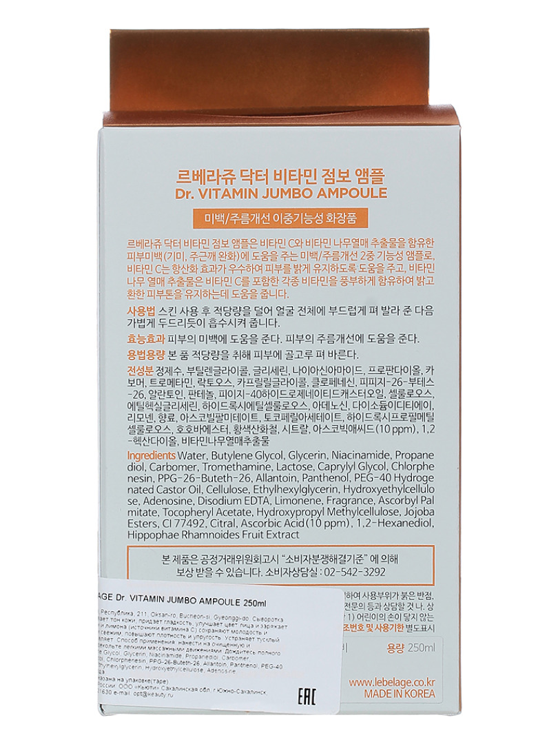LBLG AMPOULE Сыворотка для лица витаминная осветляющая LEBELAGE Dr. VITAMIN JUMBO AMPOULE 250ml