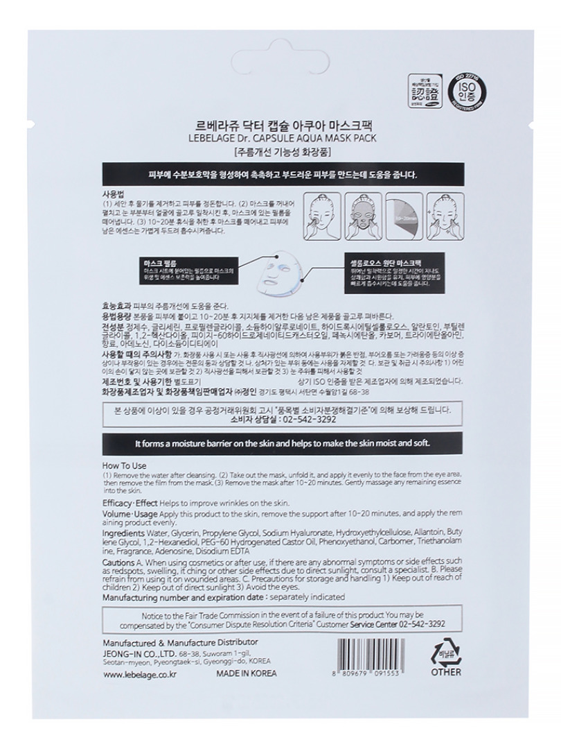 LBLG Маска для лица тканевая с гиалуроновой кислотой LEVELAGE Dr. CAPSULE AQUAMASK PACK