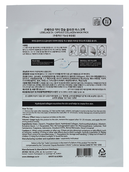 LBLG Маска для лица тканевая с коллагеном LEVELAGE Dr. CAPSULE COLLAGEN MASK PACK