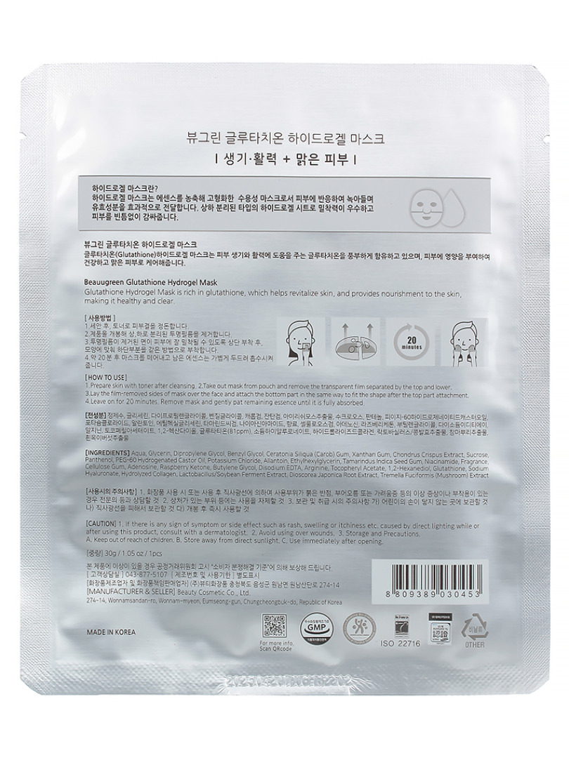 БГР Маска-патч гидрогелевая Beauugreen Glutathione Hydrogel Mask 30g
