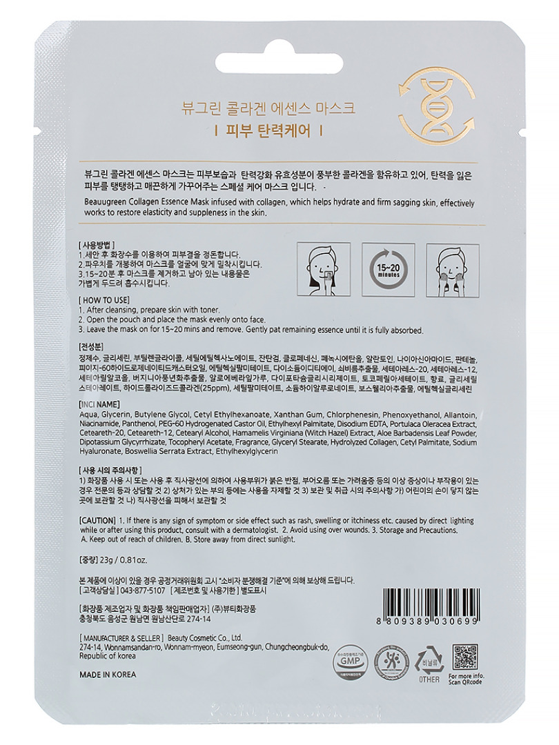 БГР Маска на тканевой основе BeauuGreen Premium Collagen Essence mask 23g