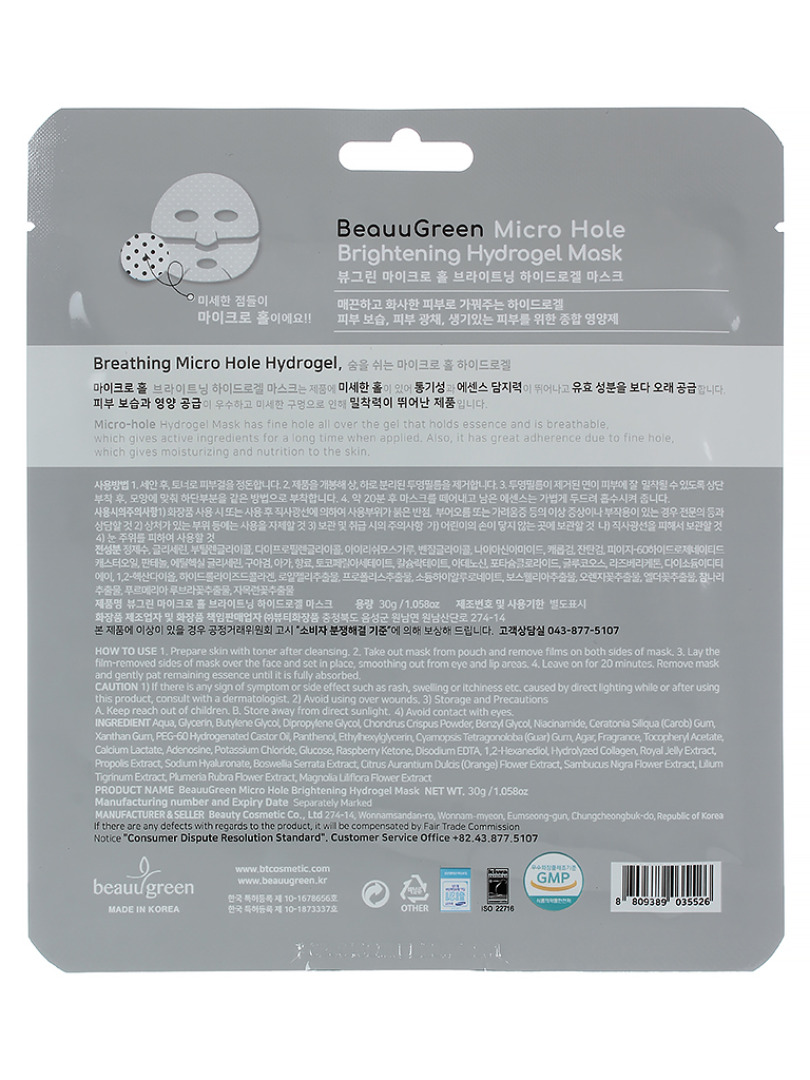 БГР Маска-патч гидрогелевая Beauugreen Micro Hole Brightening Hydrogel Mask 30g
