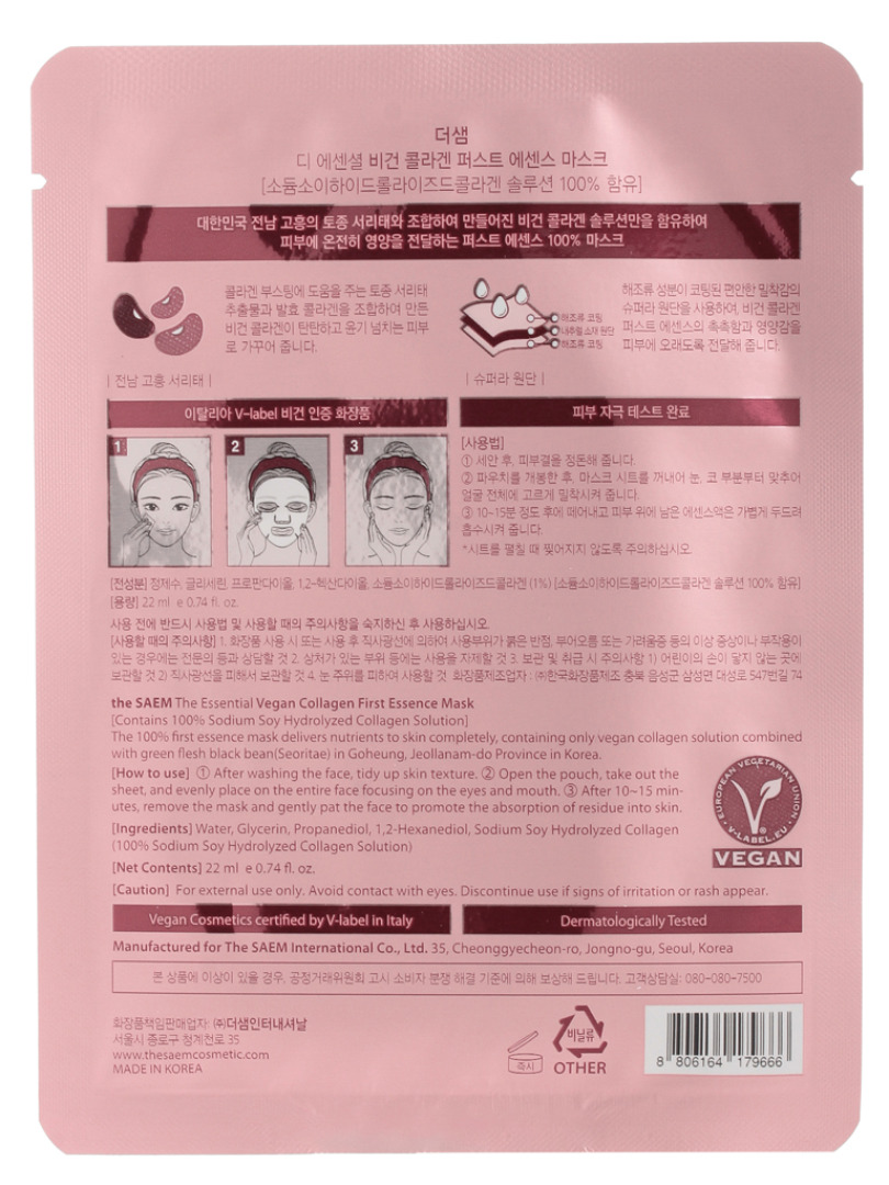 СМ Essential VEGAN Маска тканевая для лица с растительным коллагеном НАБОР the Essential Vegan Collagen First Essence Mask Set_5masks