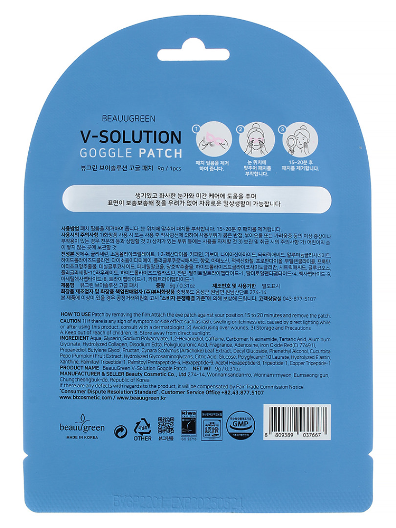 БГР Маска-патч для кожи вокруг глаз BeauuGreen V-Solution Goggle Patch / 9g