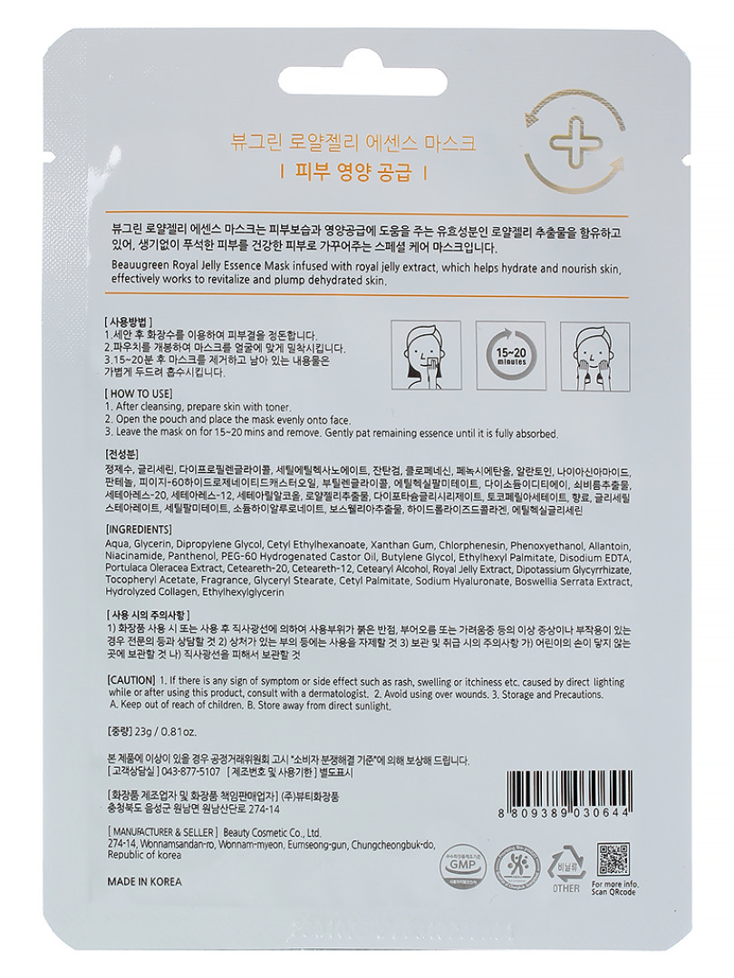 БГР Маска на тканевой основе BeauuGreen Premium Royal Jelly Essence mask 23g