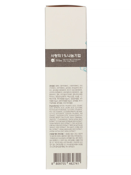 Water,Stearic Acid ,Glycerin ,Myristic Acid , Lauric Acid,Potassium Hydroxide ,Dimethicone,Beeswax ,Glyceryl Stearate, Cocamidopropyl Betaine ,PEG-100 Stearate,Sodium Benzoate, Potassium Cocoyl Glycinate ,Fragrance ,Caprylyl Glycol ,Potassium Cocoate ,PEG-14M ,Sodium Chloride ,Ethylhexylglycerin ,Disodium EDTA,Propanediol ,Caramel ,Vigna Radiata Seed Extract , Vigna Angularis Seed Extract, Silica ,Butylene Glycol ,Lactobacillus/Soybean Ferment Extract,1,2-Hexanediol,Saccharomyces/Barley Seed Ferment Filtrate ,Lactobacillus/Punica Granatum Fruit Ferment Extract. Lactobacillus/Pear Juice Ferment Filtrate,Saccharomyces/Potato Extract Ferment Filtrate,Saccharomyces/Coix Lacryma-Jobi Ma-yuen Seed Ferment,Filtrate,Lactobacillus/Rice Ferment, Lactobacillus/Panax Ginseng Root Ferment Filtrate ,BHT ,Glycine Soja (Soybean) Oil ,Phytosterols ,Squalane ,Olea Europaea (Olive) Fruit Oil ,Lecithin ,Polyglyceryl-3 Diisostearate, Oryza Sativa (Rice) Germ Extract ,Oryza Sativa (Rice) Extract,Hydrolyzed Wheat Protein ,Ceramide NP,Butyrospermum Parkii (Shea) Butter