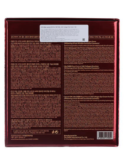 Изг-ль: THE SAEM INTERNATIONAL CO.LTD., КОРЕЯ, РЕСПУБЛИКА, 10F, 35, Cheonggyecheon-ro, Jongno-gu, Seoul. Питательный и увлажняющий набор с содержанием коллагена. Тонер (150 мл) увлажняет огрубевшую кожу, кожа становится гладкой и сияющей. Укрепляющая эмульсия (150 мл) восстанавливает водный-жировой баланс и питает. Крем для кожи вокруг глаз (40 мл) увлажняет, делает кожу упругой и эластичной. Способ применения: нанести тонер, эмульсию, крем для кожи вокруг глаз.