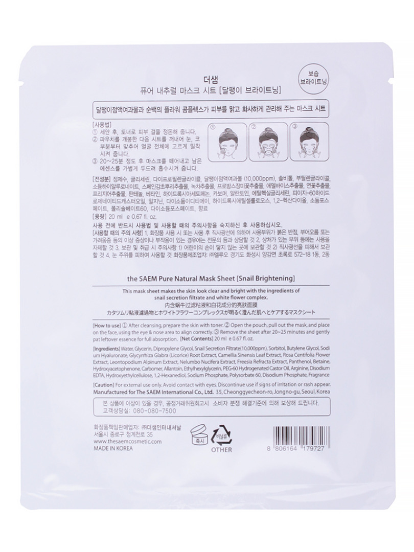 СМ Pure Natural Маска для лица на тканевой основе Pure Natural Mask Sheet (Snail Brightening)