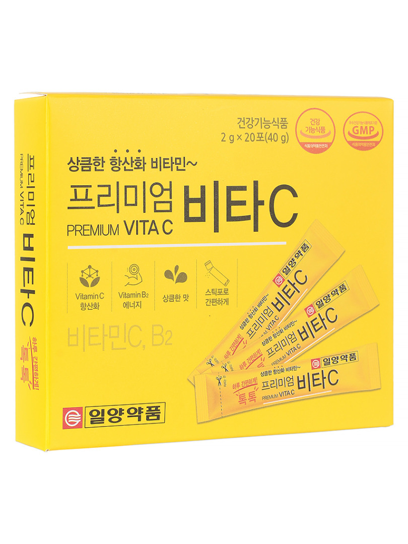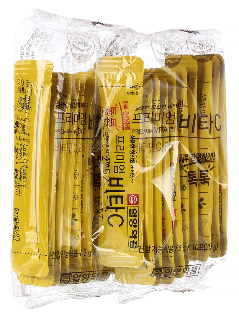 Изготовитель: IL-YANG PHARM CO., LTD., Республика Корея, 110, Hagal-ro, Giheung-gu, Yongin-si, Gyeonggi-do. Витамин С предотвращает повреждение клеток от агрессивного поведения свободных радикалов, действуя как антиоксидант. Витамин С необходим для образования внутриклеточного коллагена, а также для укрепления структуры зубов и костей. Средство поднимает иммунитет и укрепляет стенки сосудов. Витамин С + Витамин В2 в удобных стиках, которые Вы всегда сможете взять с собой. Способ применения: принимать по 1 стику 2 раза в день, высыпав содержимое пакетика в рот или размешать с салатом, с йогуртом, растворить в воде.