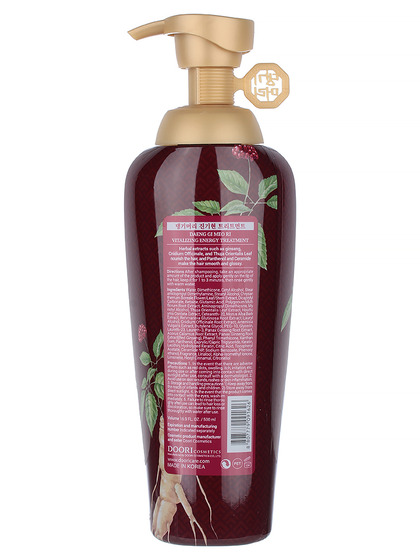 Изг-ль: DOORI COSMETICS Co., LTD., КОРЕЯ, РЕСПУБЛИКА, 588, Dabok-ro, Chubu-myeon, Geumsan-gun, Chungcheongnam-do. Восстанавливающий бальзам для волос с женьшенем оживляет сухие и ломкие волосы: повышает эластичность, разглаживает и смягчает, укрепляет по всей длине. Защищает от внешних раздражителей, препятствует сечению кончиков, дарит естественное сияние, распутывает, делает волосы послушными, шелковистыми и лёгкими. Содержит экстракты женьшеня, жгун-корня и туи восточной, а также пантенол и церамиды.. Способ применения: на очищенные волосы нанесите бальзама, оставьте на 2-3 минуты, смойте теплой водой.