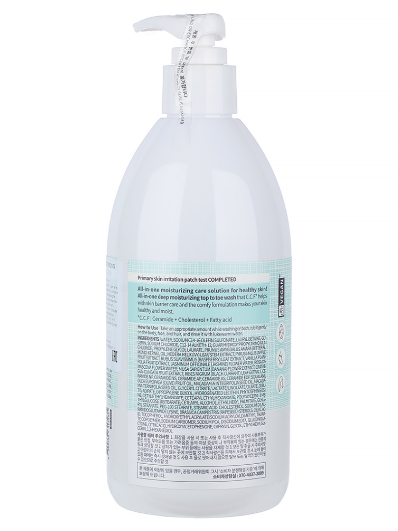 Изг-ль: GREENCOS Co.Ltd., Республика Корея, 64-30, Hagunsandan 1-ro, Yangchon-eup, Gimpo-si, Gyeonggi-do. Увлажняющий гель для душа 3 в 1: для тела, лица и волос. Средство содержит керамиды, холестерин, жирные кислоты, которые защищают кожный барьер. Содержит гипоаллегренную формулу, безопасен для чувствительной кожи. Веган. Способ применения: нанесите небольшое количество средства на руки или влажную мочалку, вспеньте. Хорошо помассируйте тело, волосы, лицо, смойте теплой водой.