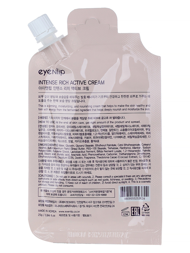 Изг-ль: Beautynet Korea Co. Ltd., КОРЕЯ, РЕСПУБЛИКА, 21, Janggogae-ro 231beonan-gil, Seo-gu, Incheon. Крем Itense Rich Active Cream содержит экстракт лактобацилл и экстракт соевого фермента, 5 видов церамидов и 3 вида коллагена. Успокаивает и защищает кожу, осветляет и борется с морщинами, глубоко увлажняет. Способ применения: нанести на очищенную и тонизированную кожу лица массажными движениями.