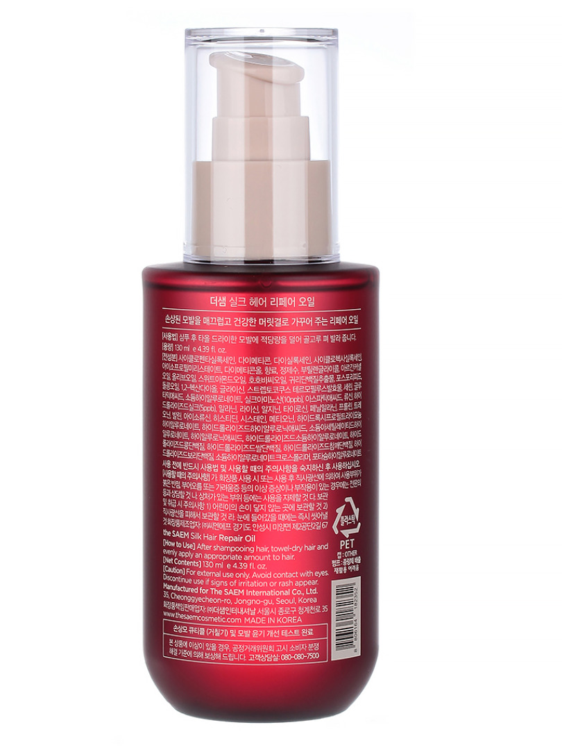 Изг-ль: The Saem International Co., Ltd., КОРЕЯ, РЕСПУБЛИКА, Jongro-gu, Chonggechon-ro 35, Seoul. Масло интенсивно восстанавливает и увлажняет пересушенные волосы, поврежденные в процессе покрасок, использования фена и термических обработок для укладки. Создает защитное покрытие, благодаря белковому комплексу. Содержит масло жожоба, масло семян камелии, экстракт мяты, экстракт чайного дерева, экстракт алоэ вера, гидролизованный шелк, гидролизованный белок пшеницы, гидролизованный белок, гидролизованный рисовый белок и т.д. Способ применения: распределить на очищенные волосы.