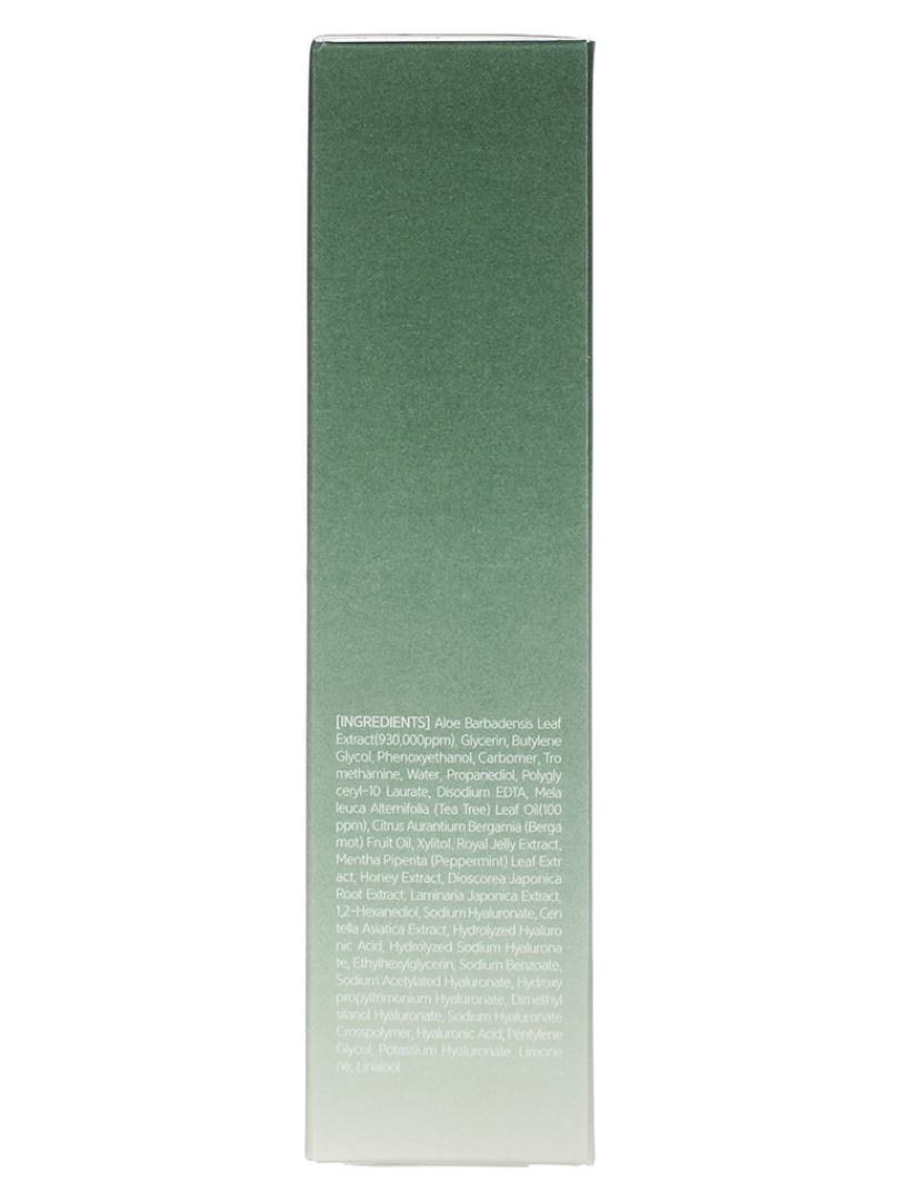 Water, Glycerin, Butylene Glycol, Phenoxyethanol, Carbomer, Aloe Barbadensis Leaf Extract, Tromethamine, Polyglyceryl-10 Laurate, Propanediol, Ethylhexylglycerin, Disodium EDTA, Melaleuca Alternifolia (Tea Tree) Leaf Oil, Limonene, Linalool, Citrus Aurantium Bergamia (Bergamot) Fruit Oil, 1,2-Hexanediol, Centella Asiatica Extract, Honey Extract, Royal Jelly Extract, Xylitol, Mentha Piperita (Peppermint) Leaf Extract, Dioscorea Japonica Root Extract, Laminaria Japonica Extract, Sodium Hyaluronate, Hydrolyzed Sodium Hyaluronate, Hydrolyzed Hyaluronic Acid, Sodium Benzoate, Sodium Acetylated Hyaluronate, Hydroxypropyltrimonium Hyaluronate, Dimethylsilanol Hyaluronate, Sodium Hyaluronate Crosspolymer, Pentylene Glycol, Hyaluronic Acid, Potassium Hyaluronate