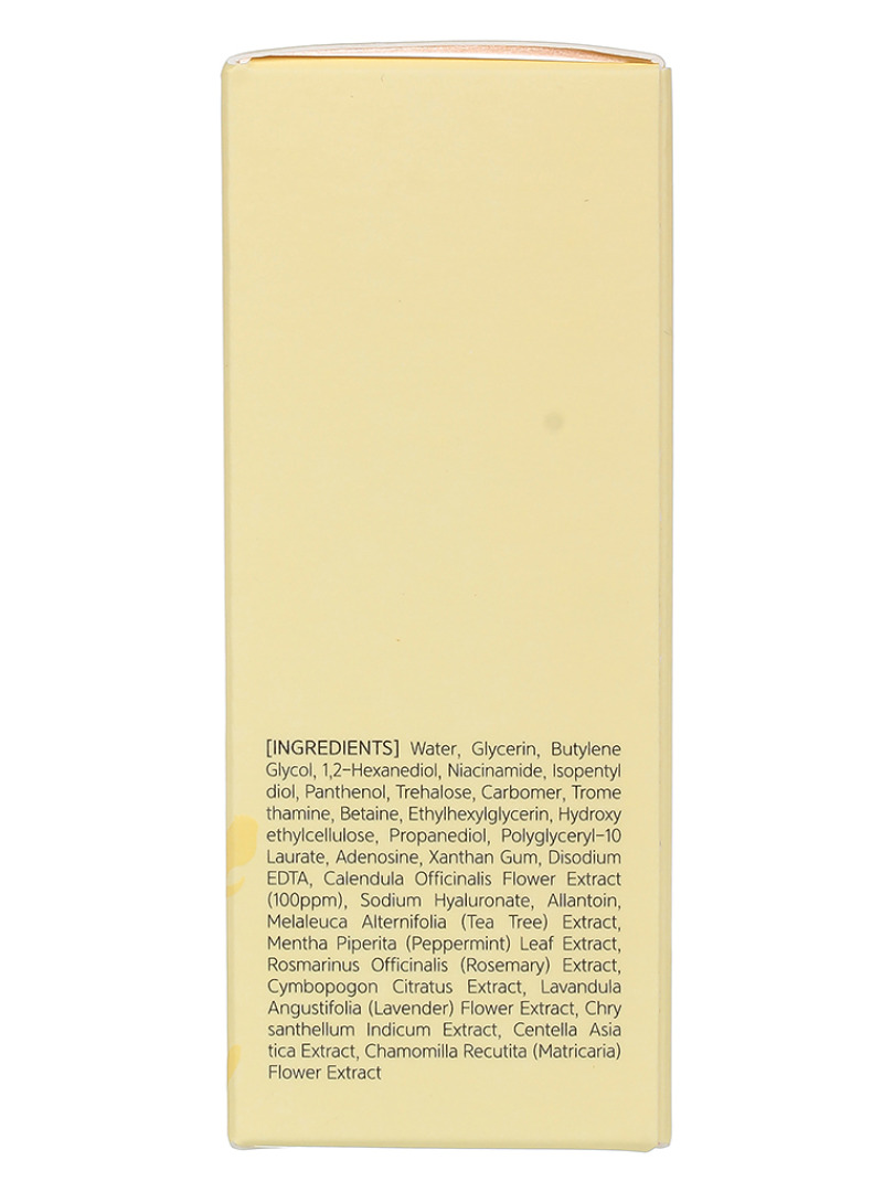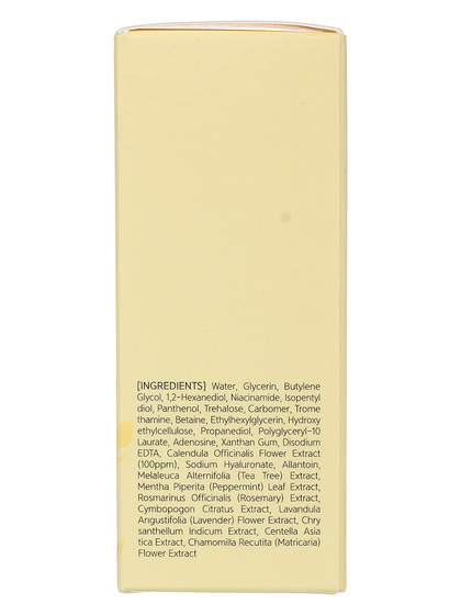 Water, Glycerin, Butylene Glycol, 1,z-Hexanediol, Niacinamide, Isopentyldiol, Panthenol, Treha1ose, Carbomer, Tromethamine, Betaine, Ethylhexylglycerin, Hydroxyethylcellulose, Propanediol, Polyglyceryl-10 Laurate, Adenosine, Xanthan Gum, Disodium EDTA, Calendula Officinalis Flower Extract, Sodium Hyaluronate, Allantoin, Melaleuca Alternifolia {Tea Tree) Extract, Mentha Piperita (Peppermint) Leaf Extract, Rosmarinus Officinalis (Rosemary) Extract, Cymbopogon Citratus Extract, Lavanduta Angustifolia (Lavender) Flower Extract, Chrysanthellum lndicum Extract, Centella Asiatica Extract, Chamomilla Recutita (Matricaria) Flower Extract