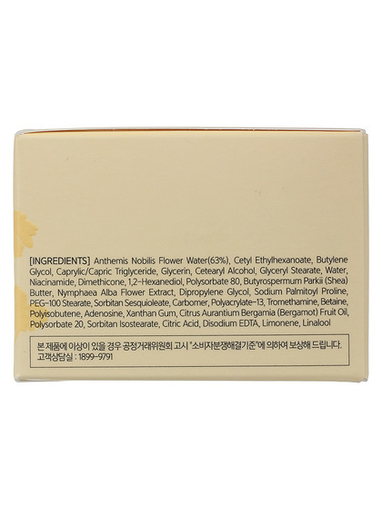 Water, Cetyl Ethylhexanoate, Butylene Glycol, Caprylic/Capric Triglyceride, Glycerin, Cetearyl Alcohol, Glyceryl Stearate, 1,2-Hexanediol, Niacinamide, Polysorbate 80, Dimethicone, Butyrospermum Parkii (Shea) Butter, PEG-100 Stearate, Sorbitan Sesquioleate, Polyacrylate-13, Carbomer, Polyisobutene, Tromethamine, Anthemis Nobilis Flower Water, Betaine, Adenosine, Polysorbate 20, Xanthan Gum, Sorbitan Isostearate, Citrus Aurantium Bergamia (Bergamot) Fruit Oil, Disodium EDTA, Dipropylene Glycol, Sodium Palmitoyl Proline, Nymphaea Alba Flower Extract, Citric Acid