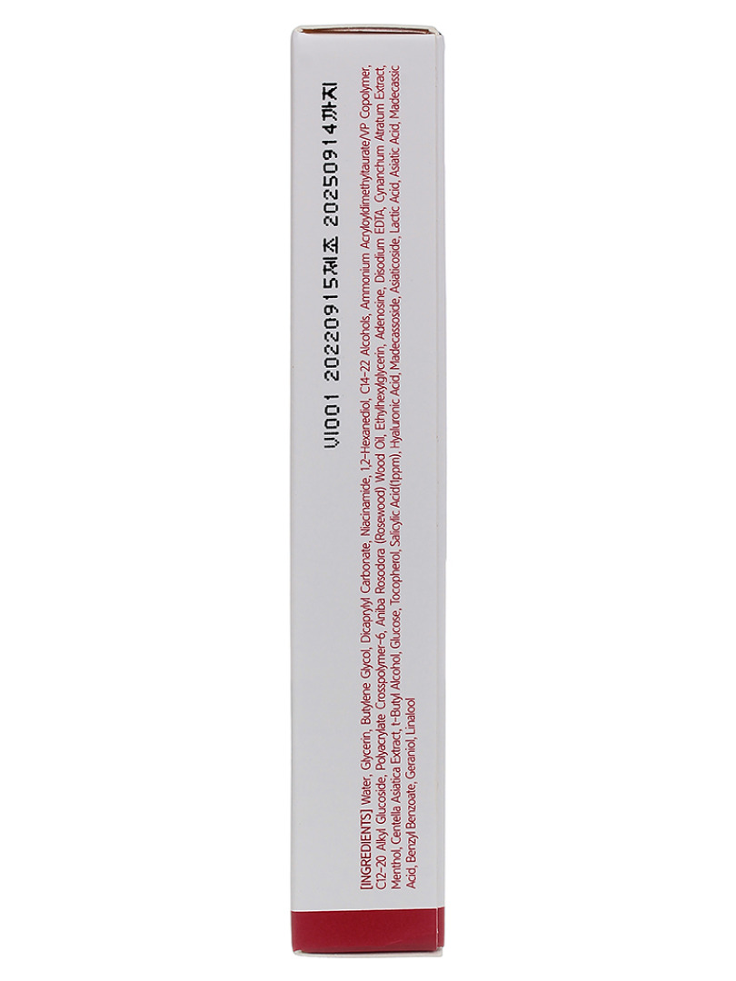Water, Glycerin, Butylene Glycol, Dicaprylyl Carbonate, Niacinamide, 1,2-Hexanediol, C14-22 Alcohols, Ammonium Acryloyldimethyltaurate/VP Copolymer, C12-20 Alkyl Glucoside, Polyacrylate Crosspolymer-6, Aniba Rosodora (Rosewood) Wood Oil, Ethylhexylglycerin, Adenosine, Disodium EDTA, Cynanchum Atratum Extract, Menthol, Centella Asiatica Extract, t-Butyl Alcohol, Glucose, Tocopherol, Salicylic Acid, Hyaluronic Acid, Madecassoside, Asiaticoside, Lactic Acid, Asiatic Acid, Madecassic Acid, Benzyl Benzoate, Geraniol, Linalool
