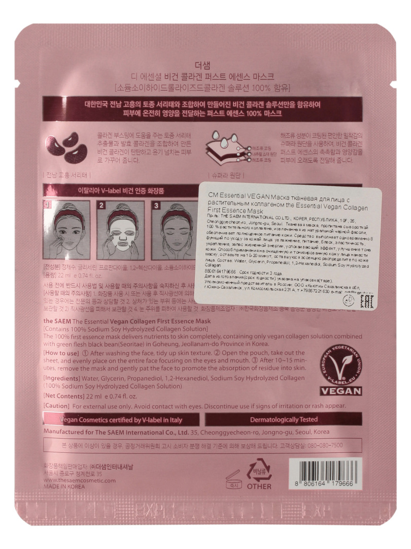 СМ Essential VEGAN Маска тканевая для лица с растительным коллагеном the Essential Vegan Collagen First Essence Mask