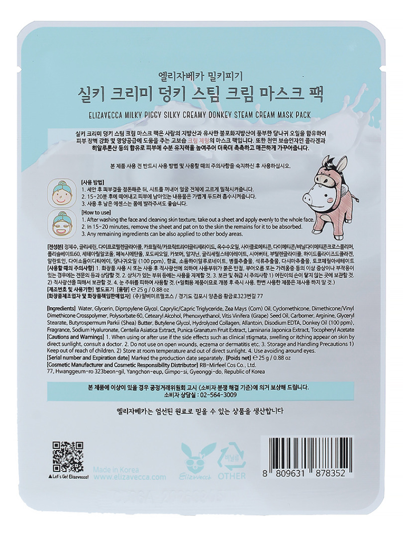 ЕЛЗ Donkey Piggi Маска тканевая Silky Creamy donkey Steam Cream Mask Pack 25g