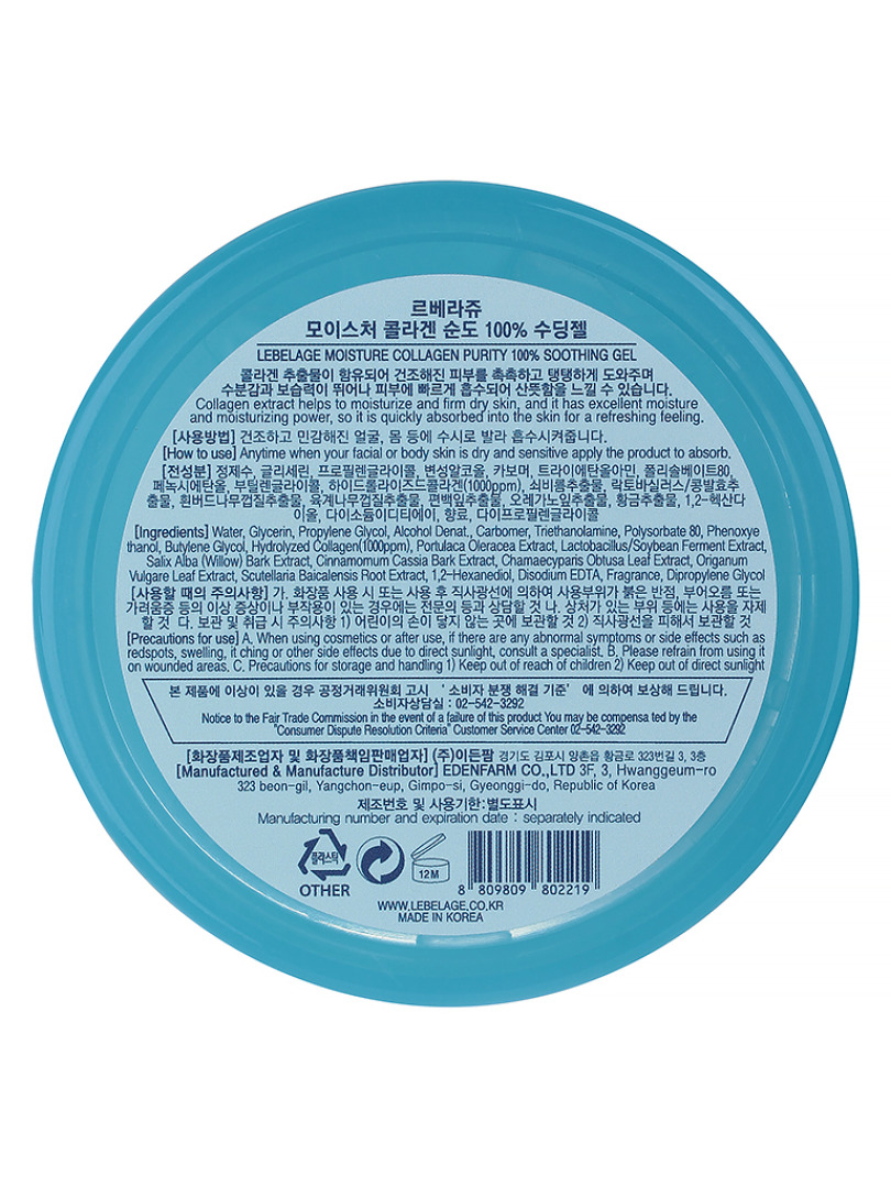 LBLG GEL Гель для лица и тела с коллагеном LEBELAGE MOISTURE COLLAGEN PURITY 100% SOOTHING GEL 300ml