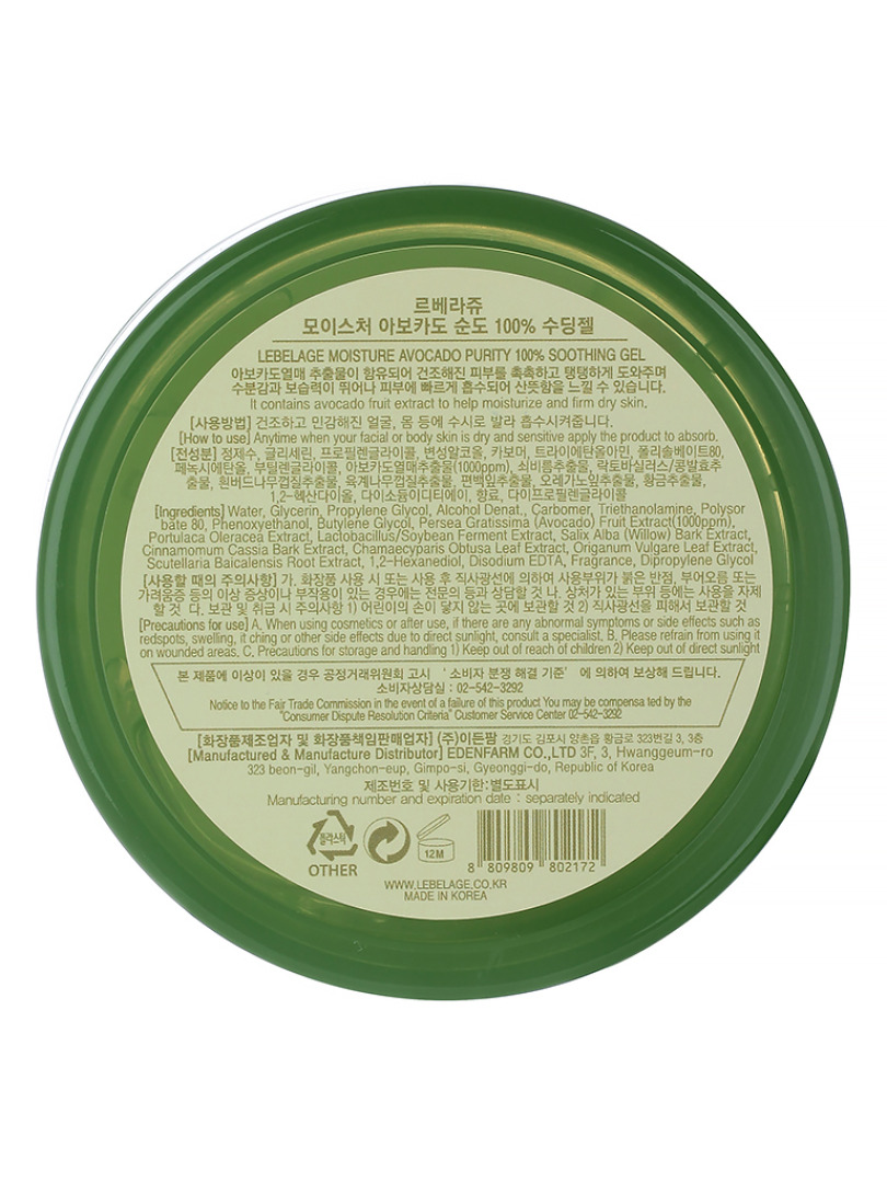 LBLG GEL Гель для тела успокаивающий с авокадо LEBELAGE MOISTURE AVOCADO 100% SOOTHING GEL 300ml