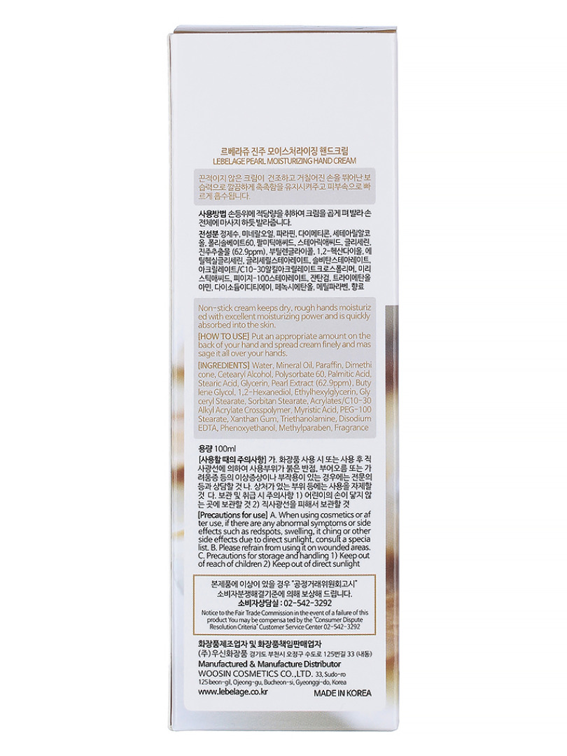 LBLG HAND Крем для рук с жемчугом LEBELAGE PEARL MOISTURIZING HAND CREAM 100ml