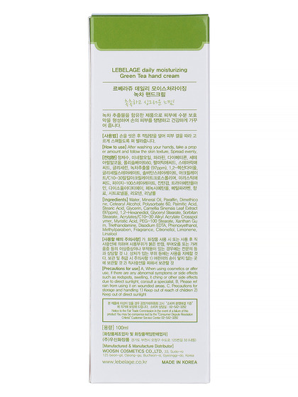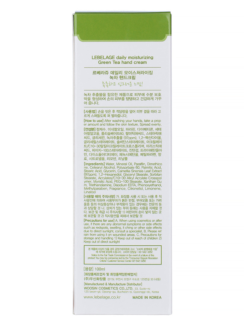 LBLG HAND Крем для рук с экстрактом зеленого чая LEBELAGE DAILY MOISTURIZING GREEN TEA HAND CREAM 100ml