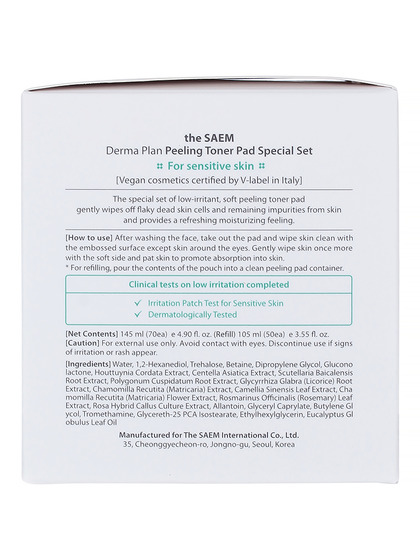Пр-ль: THE SAEM INTERNATIONAL CO.LTD., КОРЕЯ, РЕСПУБЛИКА, 10F, 35, Cheonggyecheon-ro, Jongno-gu, Seoul. Средство содержит зеленый комплекс из 7 растений, обладающих успокаивающими свойствами, а также аллантоин и РНА кислоты. Пады, пропитанные тоником — отличное решение для быстрого, но от этого не менее эффективного ухода за кожей. Пады выравнивают баланс кислотности, сохраняя рН на оптимальном уровне. Одна сторона диска рельефная, что помогает отшелушивать мертвые клетки кожи, вторая же гладкая, благодаря чему можно легко все загрязнения стереть. Хлопковые диски не вызывают аллергии, не повреждают и не раздражают кожу. В наборе: пады очищающие в мягкой и твердой упаковке. Cпособ применения: протереть лицо по массажным линиям после очищения кожи.