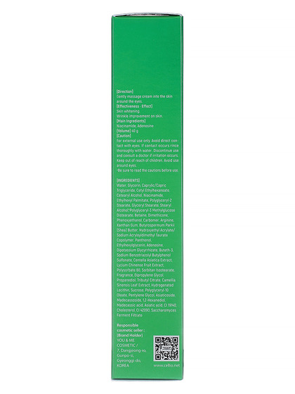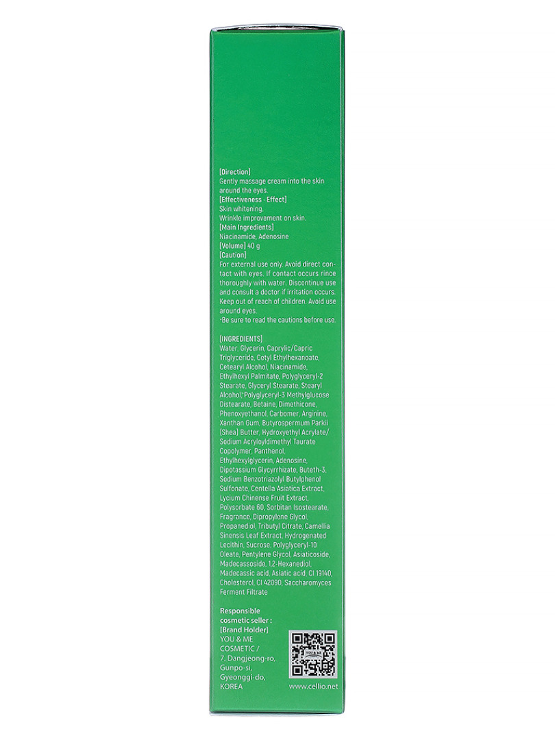 Изготовитель: You&Me Cosmetic, Корея, Республика, 7, Dangjeong-ro, Gunpo-si, Gyeonggi-do. Крем для кожи вокруг глаз интенсивно повышает эластичность и упругость кожи, ускоряет синтез коллагена и укрепляет. Уменьшает выраженность глубоких морщин, разглаживает кожные заломы и мимические морщинки, сохраняет молодость кожи и эффективно увлажняет. Улучшает тон кожи, мягко осветляет и тонизирует. Способ применения: нанести крем на очищенную и тонизированную кожу, легкими массирующими движениями распределить до полного впитывания.