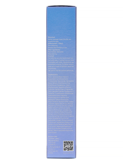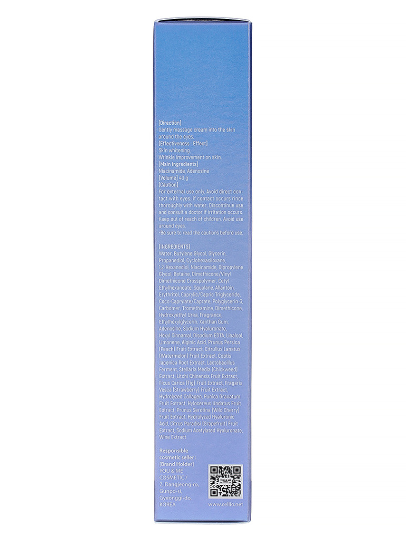 Изготовитель: You&Me Cosmetic, Корея, Республика, 7, Dangjeong-ro, Gunpo-si, Gyeonggi-do. Крем для век с коллагеном эффективно увлажняет, выравнивает тон и восстанавливает упругость нежной кожи вокруг глаз. Гидролизованный коллаген разглаживает мелкие морщины, придаёт коже упругость и эластичность, обеспечивает мгновенный лифтинг-эффект, стимулирует синтез собственного коллагена и эластина, интенсивно увлажняет и поддерживает оптимальный гидробаланс. Способ применения: нанести крем на очищенную и тонизированную кожу, легкими массирующими движениями распределить до полного впитывания.