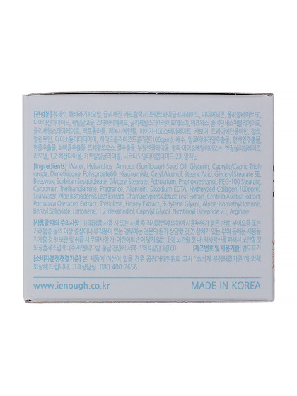 Изготовитель: Enough Co.Ltd., КОРЕЯ, РЕСПУБЛИКА, 6, Dangsan-ro 135beon-gil, Gunpo-si, Gyeonggi-do. Увлажняющий крем с активным осветляющим действием эффективно сокращает количество морщин и пигментных пятен, устраняет сухость и раздражения. Морской коллаген обладает высокой проникающей способностью, благодаря чему быстро восстанавливает структуру коллагеновых волокон, разглаживает микрорельеф кожи, повышает ее плотность, упругость и эластичность. Способ применения: нанесите крем на очищенную и тонизированную кожу.