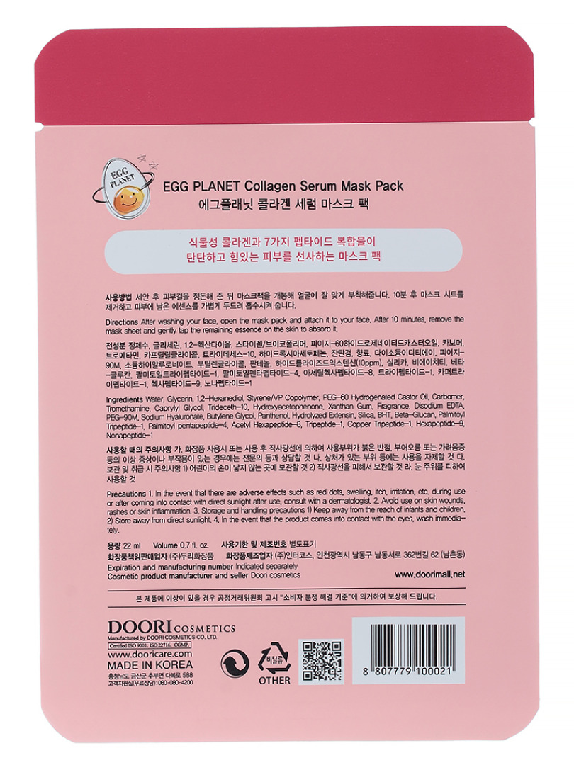 ДГМ EGG Маска на тканевой основе антивозрастная с коллагеном EGG Planet Collagen serum mask pack