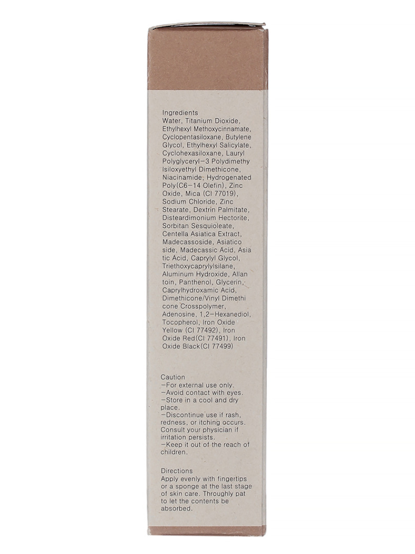 Изготовитель: HINATURE CO.LTD., Республика Корея, 21990 Smart Valley E dong 908 ho, Songdo Mirae-ro 30, Yeonsu-gu, Incheon-si. BB-крем для чувствительной кожи с экстрактом центеллы выравнивает тон кожи, маскирует несовершенства и придает естественный сияющий финиш. ББ-крем обладает солнцезащитным фактором SPF38/PA+++, защищает кожу от активного воздействия UVA и UVB лучей, уменьшает нежелательную пигментацию и замедляет процессы старения. Способ применения: нанесите необходимое количество средства и равномерно растушуйте с помощью спонжа, кисти или подушечек пальцев.