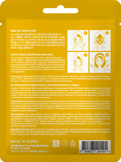 CNS F Маска для лица тканевая питательная с экстрактом манго Mango Nourishing Mask Pack 20мл