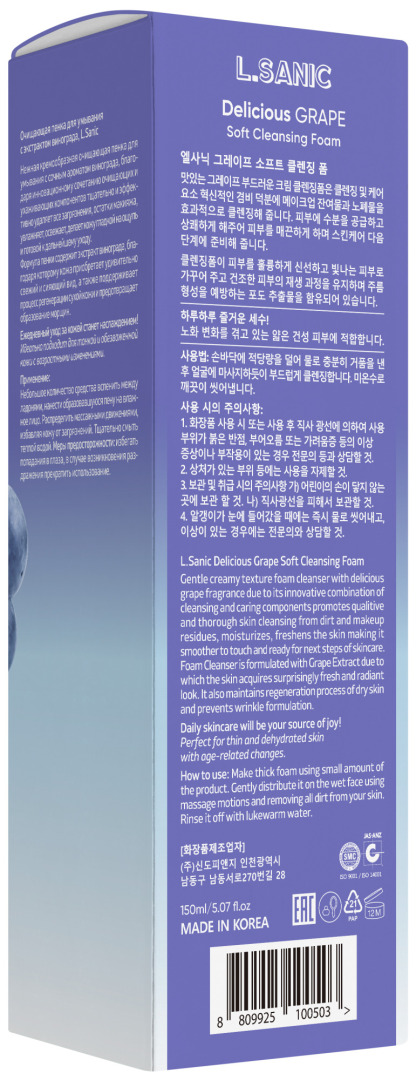 LSN Foam Пенка очищающая для умывания с экстрактом винограда, 150мл, L.Sanic
