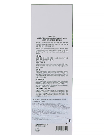 LBLG FOAM Пенка для умывания балансирующая с экстрактом зеленого чая LEBELAGE GREEN TEA BALANCING CLEANSING FOAM