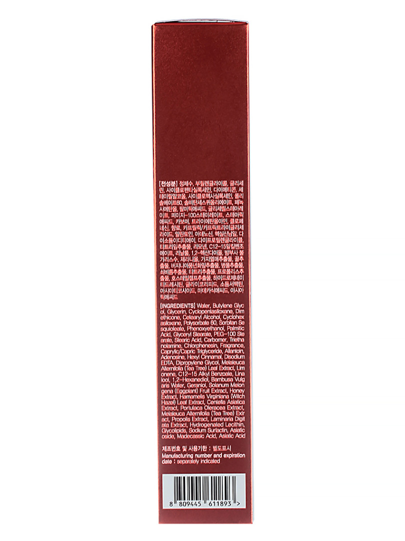 Water, Butylene Glycol, Glycerin, Cyclopentasiloxane, Dimethicone, Cetearyl Alcohol, Cyclohexasiloxane, Polysorbate 60, Sorbitan Sesquioleate, Phenoxyethanol, Palmitic Acid, Glyceryl Stearate, PEG-100 Stearate, Stearic Acid, Carbomer, Triethanolamine, Chlorphenesin, Fragrance, Caprylic/Capric Triglyceride, Allantoin, Adenosine, Hexyl Cinnamal, Disodium EDTA, Dipropylene Glycol, "Melaleuca Alternifolia (Tea, Tree) Leaf Extract", Limonene, C12-15 Alkyl Benzoate, Linalool, 1,2-Hexanediol, Bambusa Vulgaris Water, Geraniol, "Solanum Melongena, (Eggplant) Fruit Extract", Honey Extract, Hamamelis Virginiana (Witch Hazel) Leaf Extract, Centella Asiatica Extract, Portulaca Oleracea Extract, "Melaleuca Alternifolia (Tea, Tree) Extract", Propolis Extract, Laminaria Digitata Extract, Hydrogenated Lecithin, Glycolipids, Sodium Surfactin, Asiaticoside, Madecassic Acid