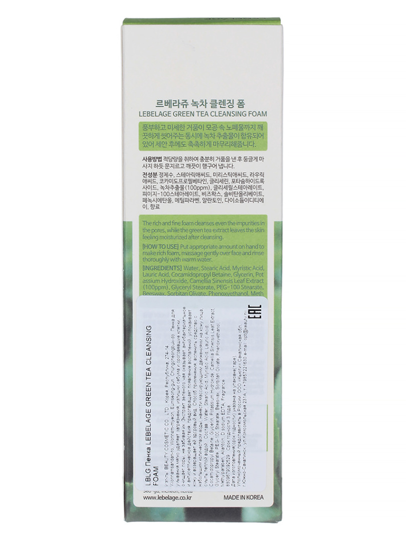 LBLG FOAM Пенка для умывания с экстрактом зеленого чая LEBELAGE GREEN TEA CLEANSING FOAM