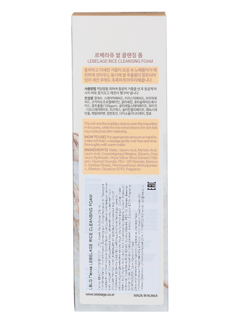 LBLG FOAM Пенка для умывания с экстрактом риса LEBELAGE RICE CLEANSING FOAM