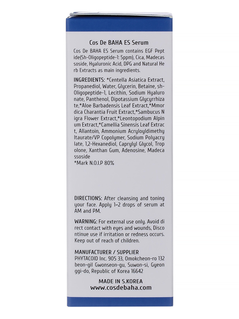 Centella Asiatica Extract, Propanediol, Water, Glycerin, Betaine, sh-Oligopeptide-1, Lecithin, Sodium Hyaluronate, Panthenol, Dipotassium Glycyrrhizate,*Aloe Barbadensis Leaf Extract,*Mmordica Charantia Fruit Extract,*Sambucus Nigra Flower Extract,*Leontopodium Alpinum Extract,*Camellia Sinensis Leaf Extract, Allantoin, Ammonium Acryloyldimethyltaurate/VP Copolymer, Sodium Polyacrylate, 1,2-Hexanediol, Caprylyl Glycol, Tropolone, Xanthan Gum, Adenosine, Madecassoside *Mark N.O.I.P 80%